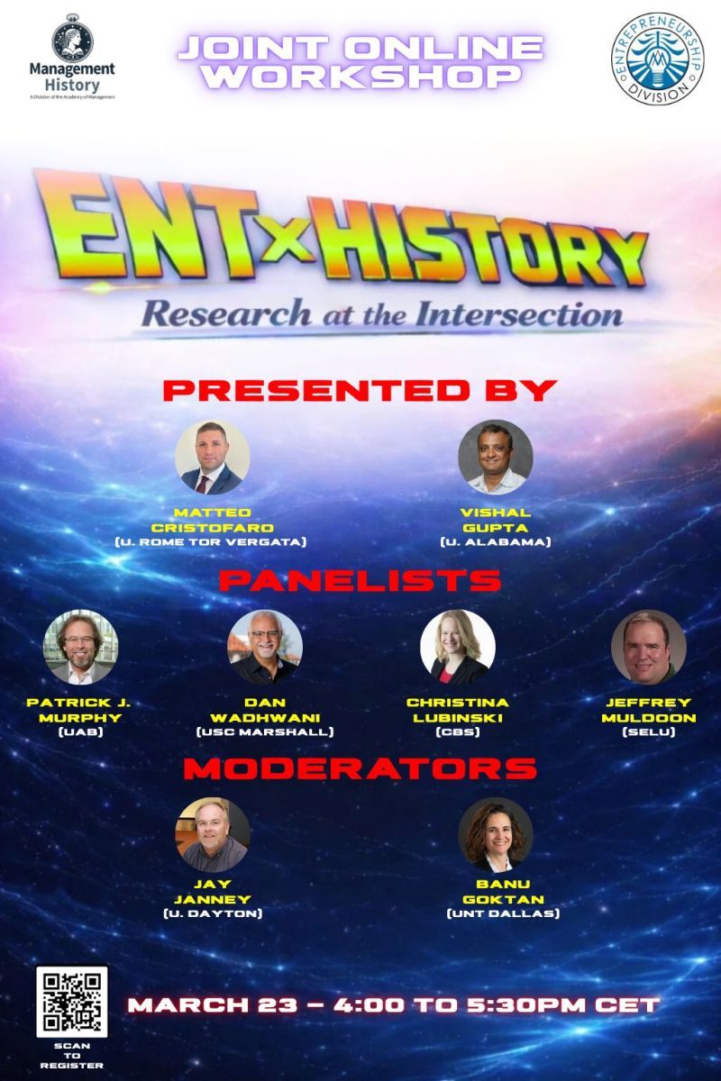 On March 23, 2026, the Management History Division, together with the Entrepreneurship Division, held the online workshop “ENT x HISTORY: Research at the Intersection”. This was the first joint event of this kind between the two divisions.